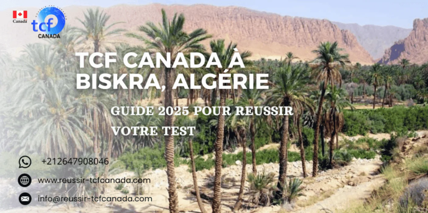 Le TCF Canada est un examen incontournable pour les candidats algériens qui souhaitent immigrer ou poursuivre des études au Canada en 2025. À Biskra, ville stratégique du sud-est de l’Algérie, de nombreux étudiants et professionnels se préparent pour obtenir un score élevé. Réussir le test TCF Canada nécessite une préparation méthodique, l’accès aux bonnes ressources et une maîtrise de la méthodologie officielle. Ce guide complet vous explique comment comprendre le test, choisir un centre TCF, organiser votre entraînement et maximiser vos chances de réussite.